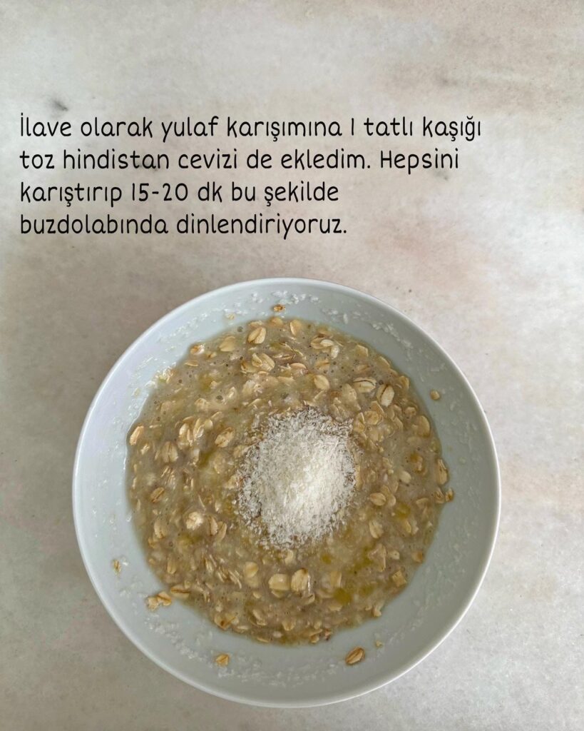 Buzdolabında mutlaka dinlendirin, yulaf sütü emsin ve yumuşasın.